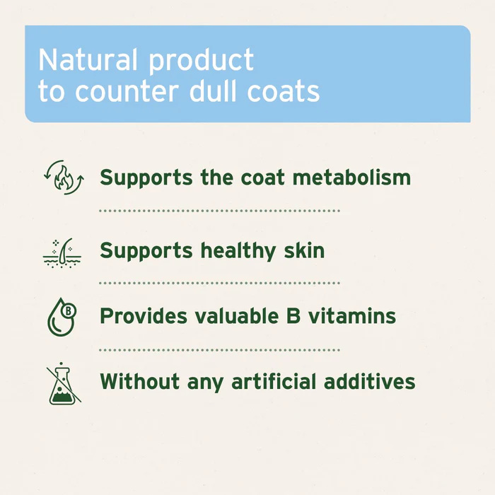 Podpora kože a srsti je zabezpečená doplnkovým krmivom AniForte Brewers Yeast Powder, ktoré obsahuje 100 % čisté pivovarské kvasnice bohaté na vitamíny skupiny B a minerály. Doplnok výživy na podporu kože a srsti je vhodný pre psy a mačky ako súčasť každodennej vyváženej stravy.
