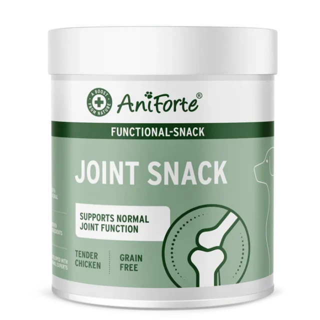 AniForte Joint Snack sú funkčné maškrty pre psy, vyvinuté na podporu normálnej funkcie kĺbov, chrupaviek a pohybového aparátu. Produkt je vhodný najmä pre psy so zvýšenou fyzickou záťažou, staršie psy alebo ako doplnok pri starostlivosti o pohyblivosť.