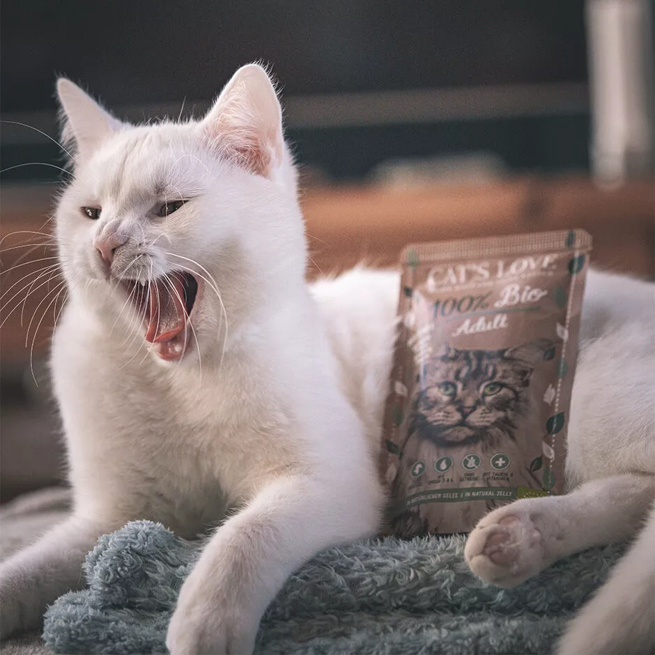 Cat’s Love BIO kapsičky pre mačky vznikli s dôrazom na kvalitu surovín a šetrné spracovanie. Výrobca používa mäso z kontrolovaného ekologického chovu a dopĺňa ho prírodnými ingredienciami, ktoré podporujú vyváženú výživu mačky. Receptúra neobsahuje obilniny, pridaný cukor ani umelé farbivá. Okrem toho výrobca nepoužíva umelé konzervanty ani arómy. Preto kapsičky predstavujú prirodzenú voľbu pre majiteľov, ktorí chcú svojej mačke dopriať kvalitné mokré krmivo z organických surovín.