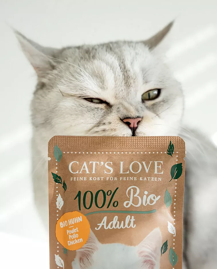 Cat’s Love BIO kapsičky pre mačky vznikli s dôrazom na kvalitu surovín a šetrné spracovanie. Výrobca používa mäso z kontrolovaného ekologického chovu a dopĺňa ho prírodnými ingredienciami, ktoré podporujú vyváženú výživu mačky. Receptúra neobsahuje obilniny, pridaný cukor ani umelé farbivá. Okrem toho výrobca nepoužíva umelé konzervanty ani arómy. Preto kapsičky predstavujú prirodzenú voľbu pre majiteľov, ktorí chcú svojej mačke dopriať kvalitné mokré krmivo z organických surovín.Prečo si vybrať kapsičky pre mačky Cat’s Love