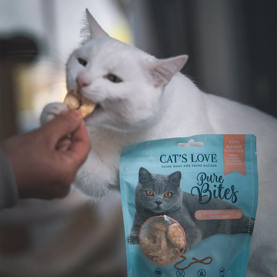 Cat’s Love maškrty s king krevetami sú vhodné pre všetky dospelé mačky. Ide o ideálnu odmenu pri tréningu, hre alebo ako malé potešenie počas dňa.