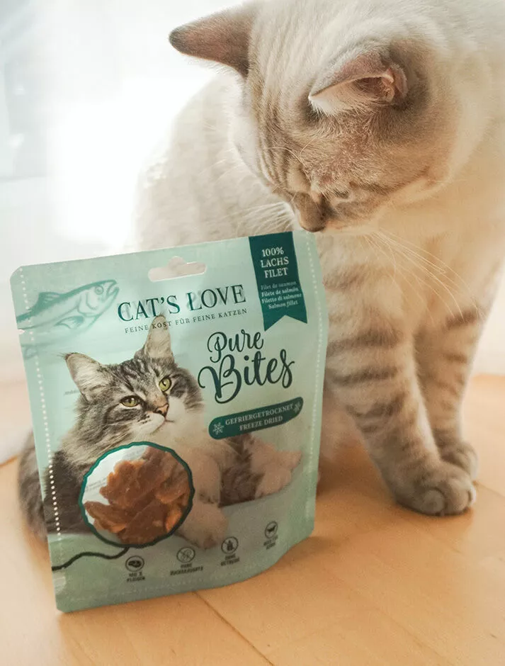 Cat’s Love maškrty pre mačky vznikajú zo starostlivo vybraného lososového filé. Výrobca používa šetrné sušenie, ktoré pomáha zachovať prirodzenú chuť aj živiny. Jednoduché zloženie znamená, že maškrty neobsahujú obilniny, pridaný cukor ani umelé prísady. Preto predstavujú prirodzenú a kvalitnú odmenu pre mačky.Prečo si vybrať maškrty pre mačky Cat’s Love