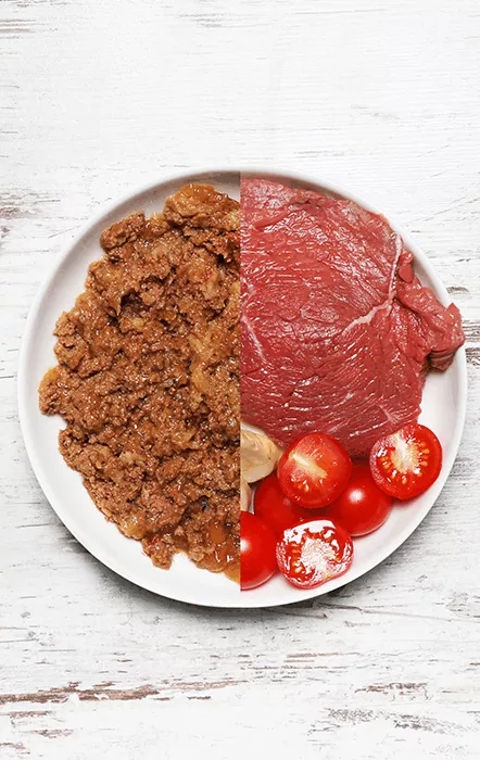 • 60 % konského mäsa, veľa čerstvej zeleniny a ovocia