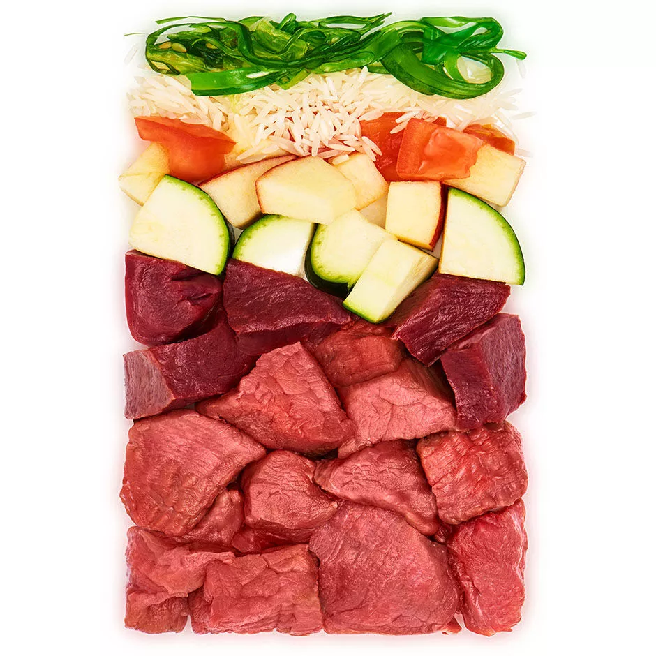 Rovnako ako všetky naše bio produkty, aj bio hovädzie menu sa vyrába udržateľným spôsobom. Vďaka najkvalitnejšiemu svalovému mäsu z bio druhovo vhodného chovu a ovociu a zelenine z bio kontrolovaného pestovania je toto kompletné krmivo optimálne prispôsobené nutričným potrebám vášho psa.