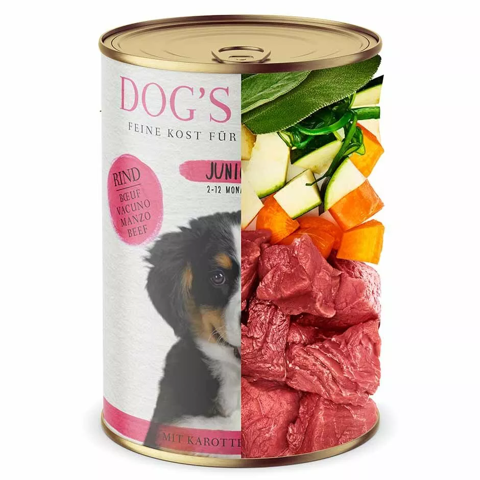 Posilňujúce hovädzie mäso a chrumkavá zelenina v jedinečnej zmesi podľa prírodného receptu: pochúťka pre mladých psov! Rovnako ako všetky naše prirodzené a druhovo vhodné JUNIOR varianty, aj toto menu je špeciálne prispôsobené potrebám psov vo veku od 6 týždňov do 12 mesiacov.
