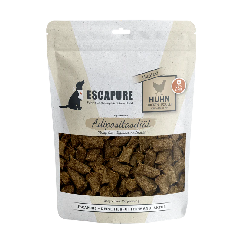 Escapure VET diétny pamlsok pre psy pri obezite je veterinárny doplnok stravy určený pre psov s nadváhou. Receptúra s upraveným obsahom energie podporuje kontrolu hmotnosti počas redukčného režimu.