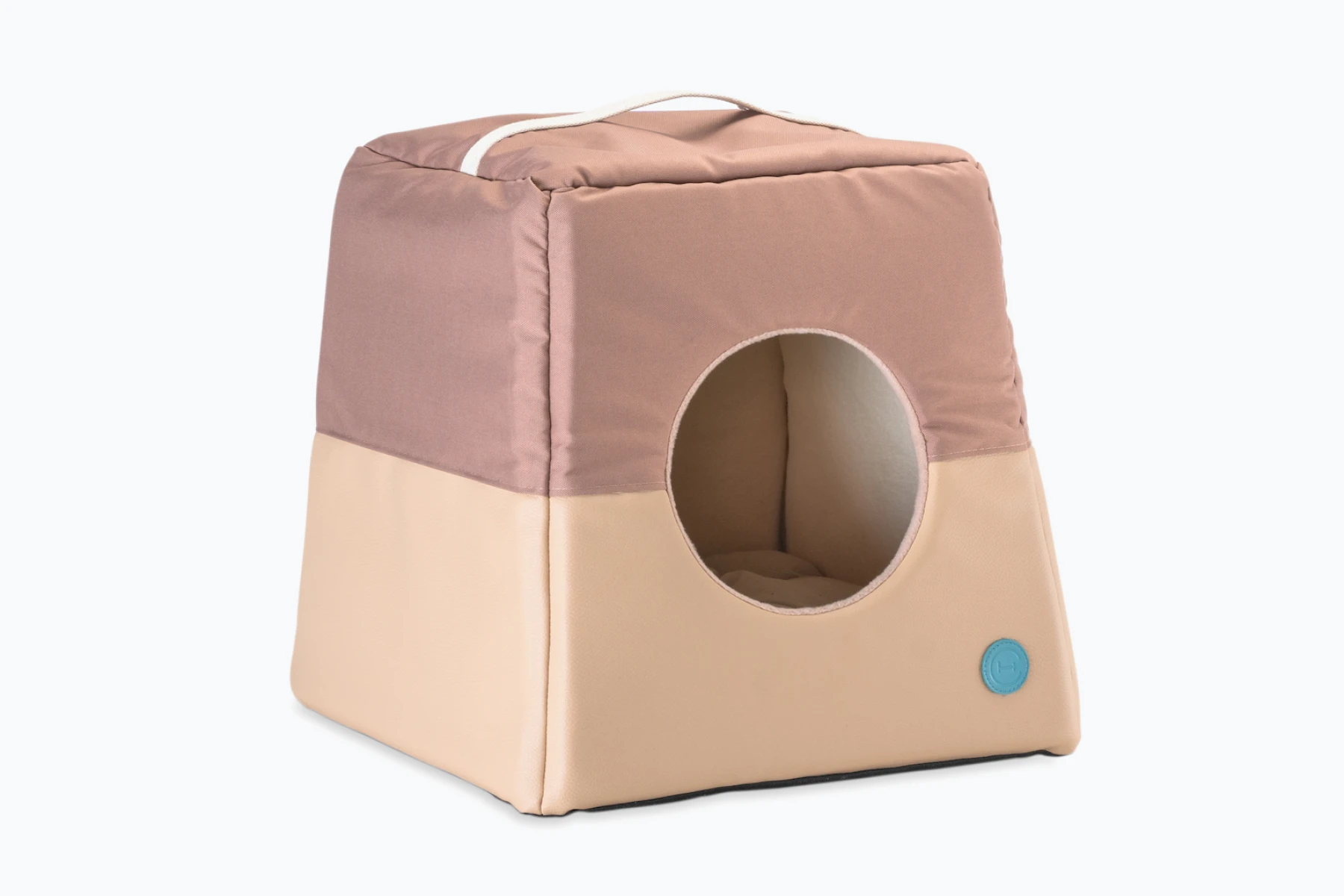 Vnútro domčeka je celé z mäkkého flísu. Odnímateľný obojstranný vankúš je vyrobený z nábytkového velúru, vo vnútri vankúša je výplň holofiber – ľahká, hypoalergénna, syntetická, neabsorbuje pachy.