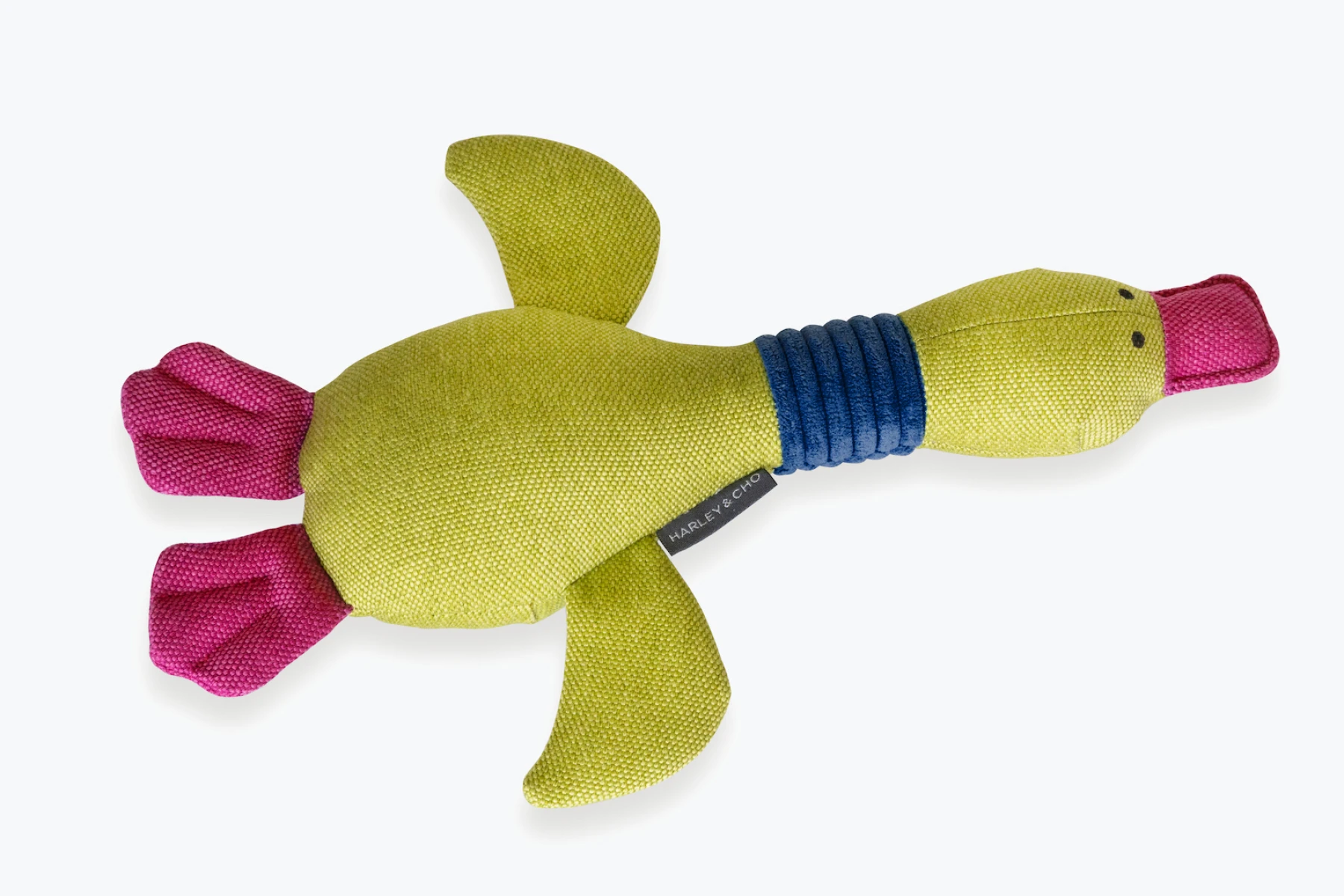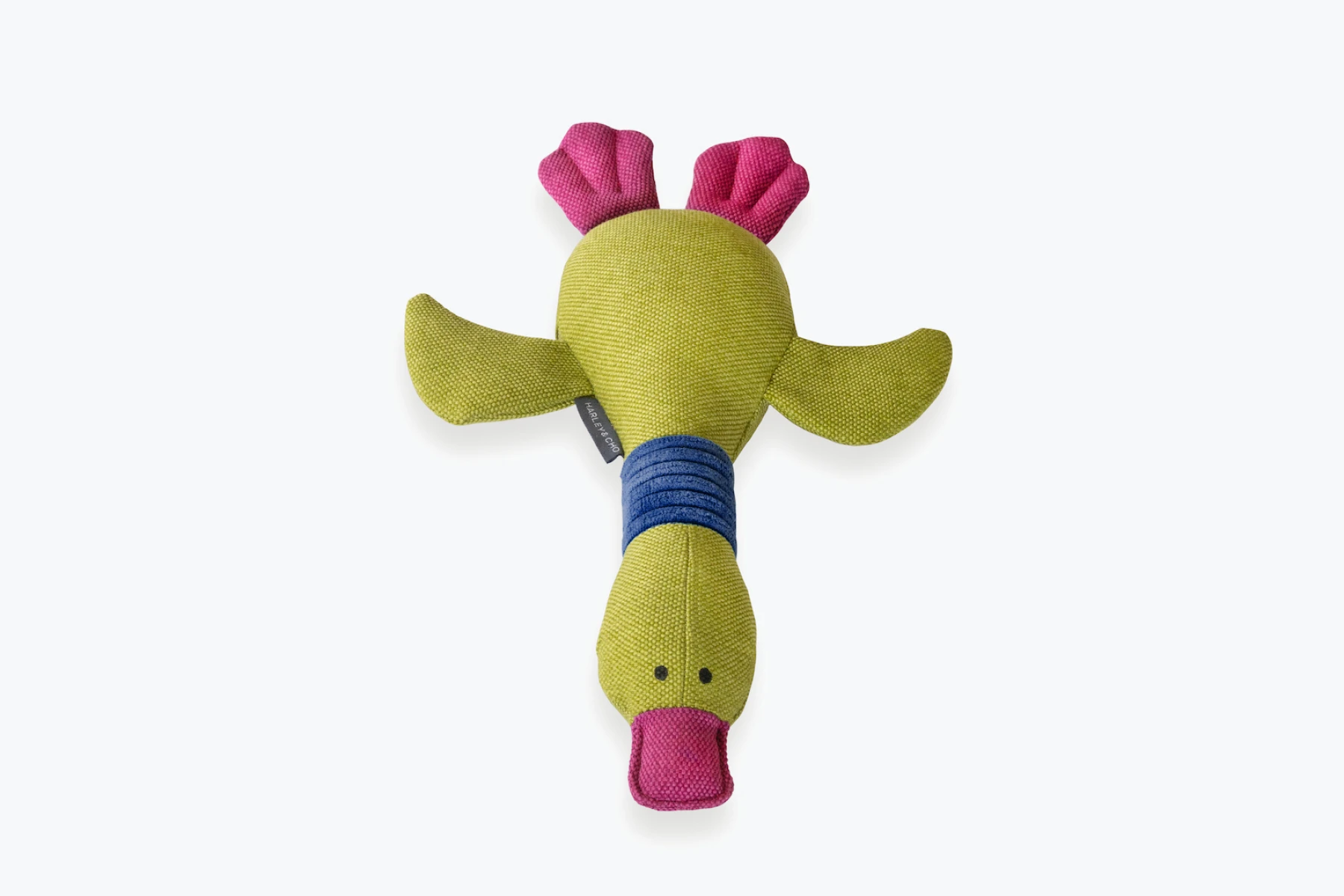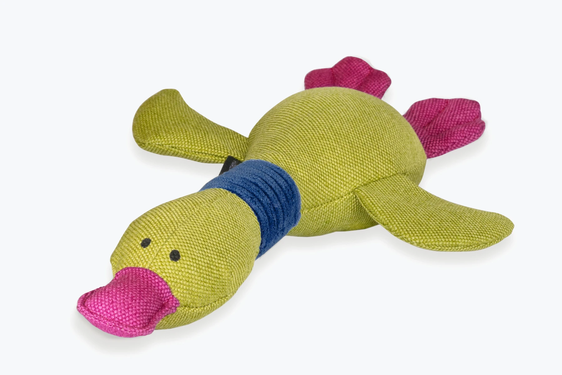 Vyrobený z čalúnenej látky, prešitý vystuženými niťami, nabitý iba pozitívnou energiou a dobrými emóciami. Ak ho pes bude silno hrýzť a trhať, určite to neprežije. Ak ho bude len nosiť v papuľke a hrať sa s ním opatrne, vydrží dlho a bude prinášať radosť.