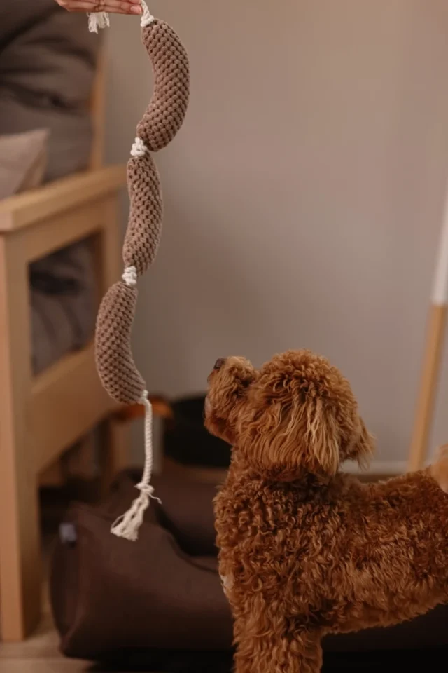 Párky sú hračka pre psov všetkých veľkostí – a dokonca aj pre mačky. Zvieratá ich milujú – sú mäkké, pripevnené na povrázku a ešte aj šuštia.
