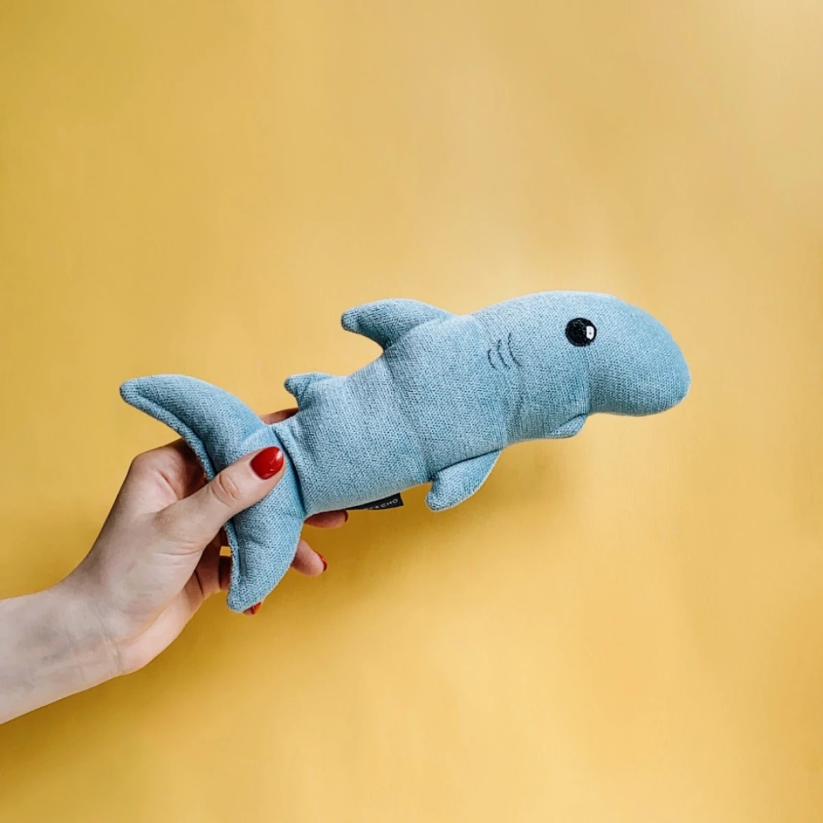 Žralok–Karalok je mäkká hračka z pevnej látky. Telo pri hre šuští.