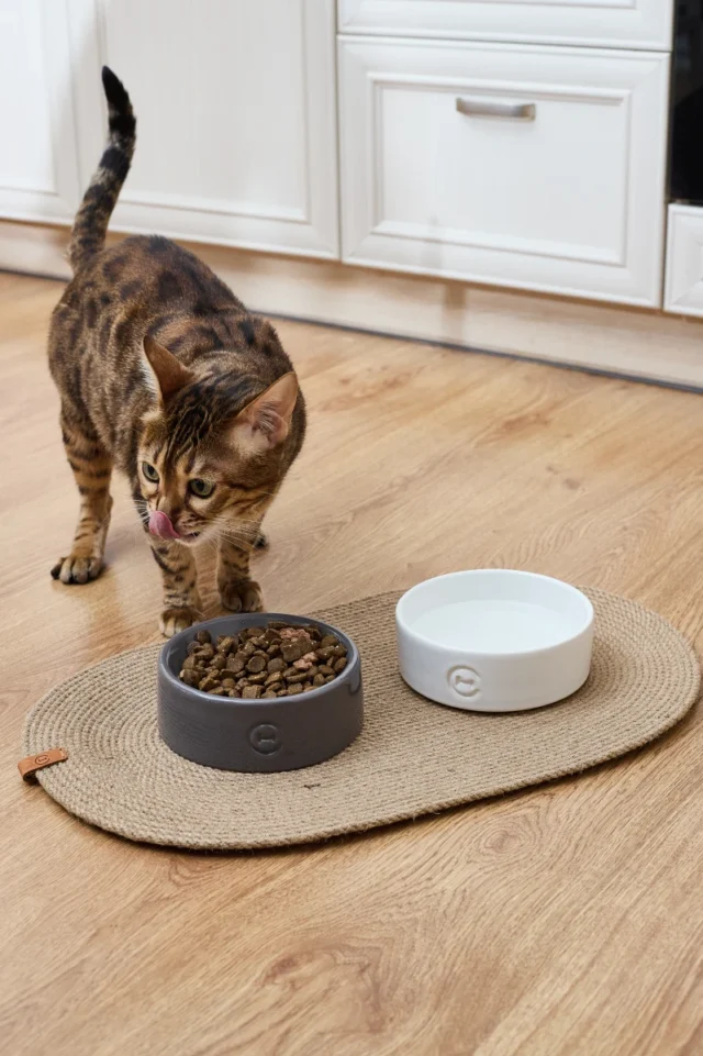 Najbezpečnejším materiálom pre misky vašich miláčikov je keramika: neabsorbuje pachy ani častice jedla, čím zabraňuje množeniu baktérií. Preto sme vyvinuli moderné keramické misky pre psov a mačky, ktoré si môžete zakúpiť v páre (na jedlo a vodu) alebo aj samostatne. Tvar misky je vhodný pre miláčikov každého veku: mačky, mačiatka, psy aj šteniatka — všetci budú spokojní.