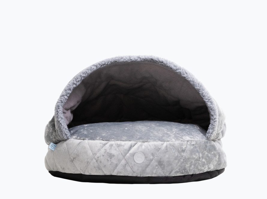 Ležadlo pre psa s kapucňou Harley & Cho Cover Plush ponúka psom pocit bezpečia a pokojného úkrytu.