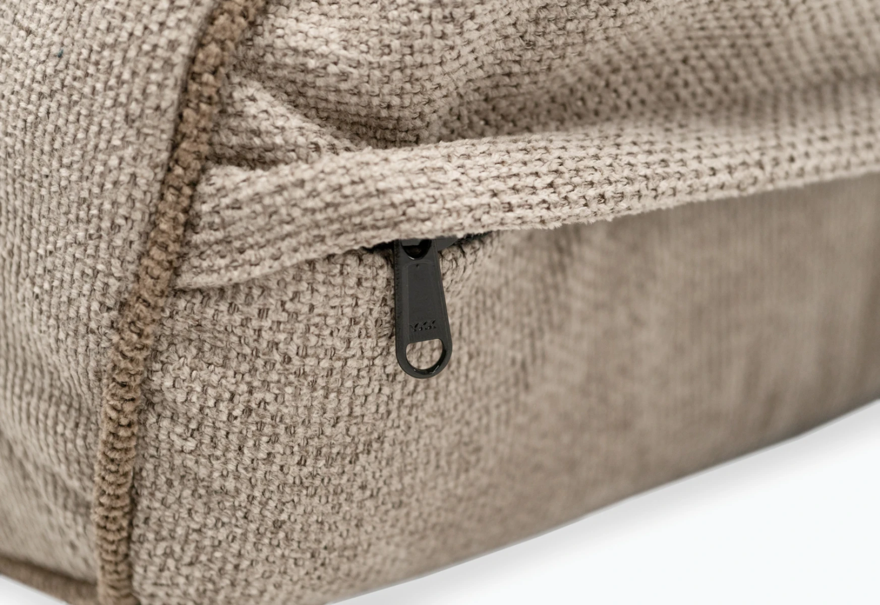 Poťah je ušitý z čalúnnického šenilu novej generácie — pevnej a príjemnej látky, odolnej voči hrabaniu a škrabaniu. Obsahuje spoľahlivú kovovú galantériu YKK.