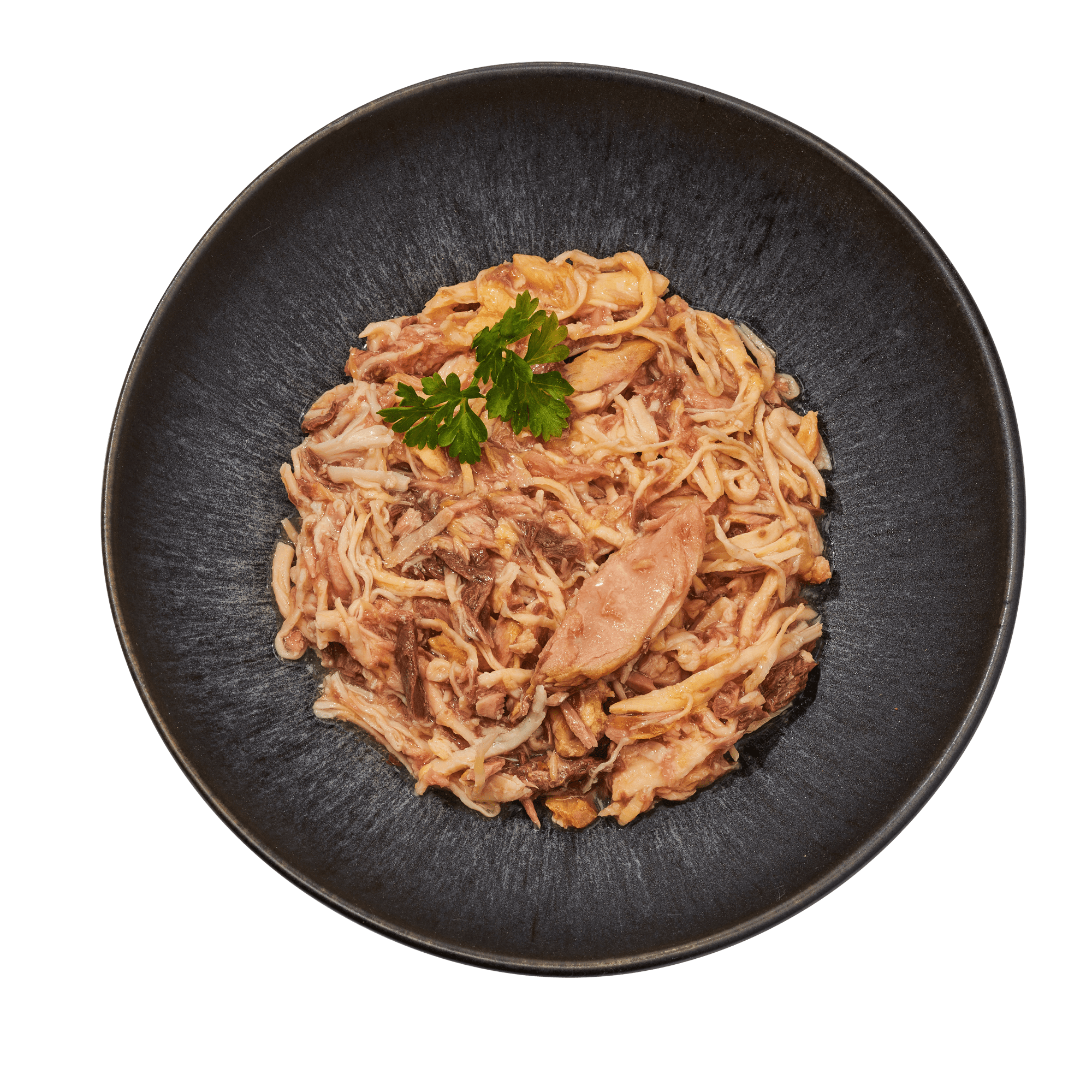 tuniak (33,13 %), kuracie mäso (33,13 %), losos (3,75 %), vývar (29,37 %), oligosacharidy (0,15 %)