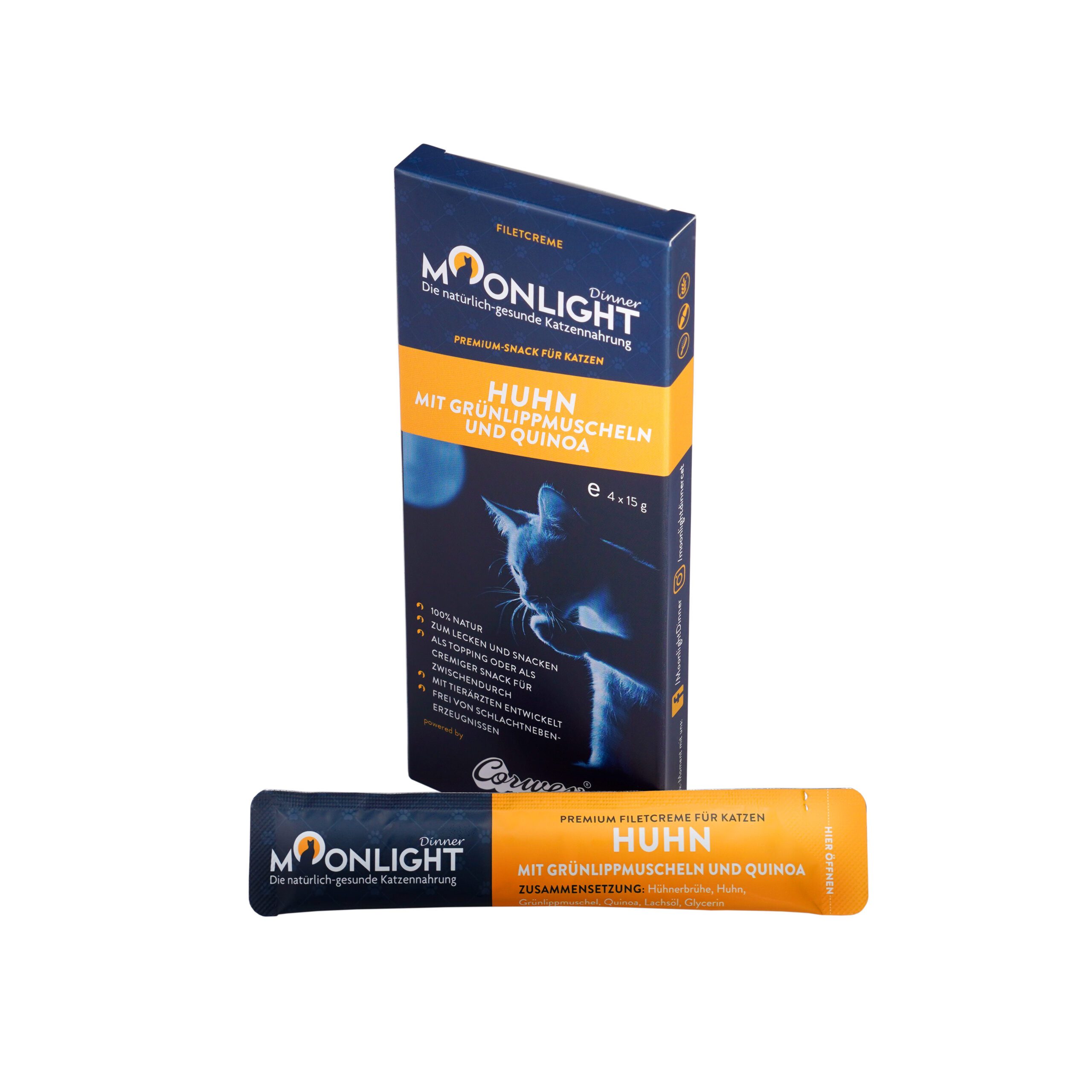 Moonlight krémové maškrty pre mačky – kuracie filety, mušľa a quinoa
