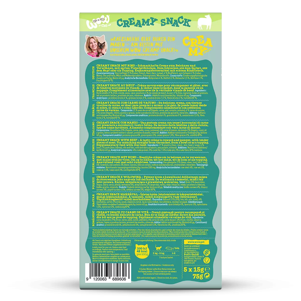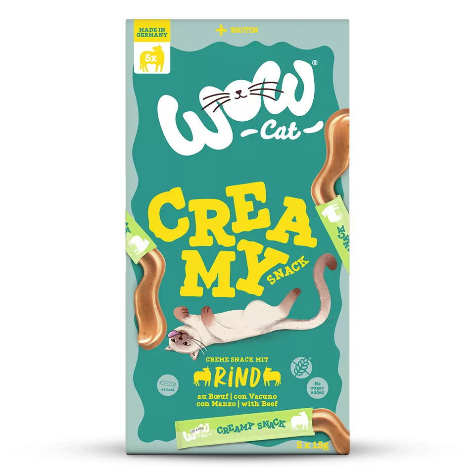 WOW CAT maškrty pre mačky – krémová pochúťka s hovädzím mäsom