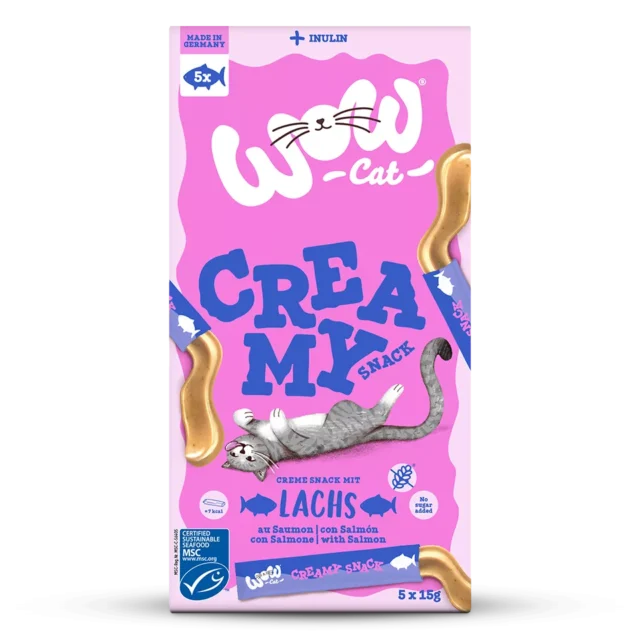 WOW CAT maškrty pre mačky – krémová pochúťka s lososom