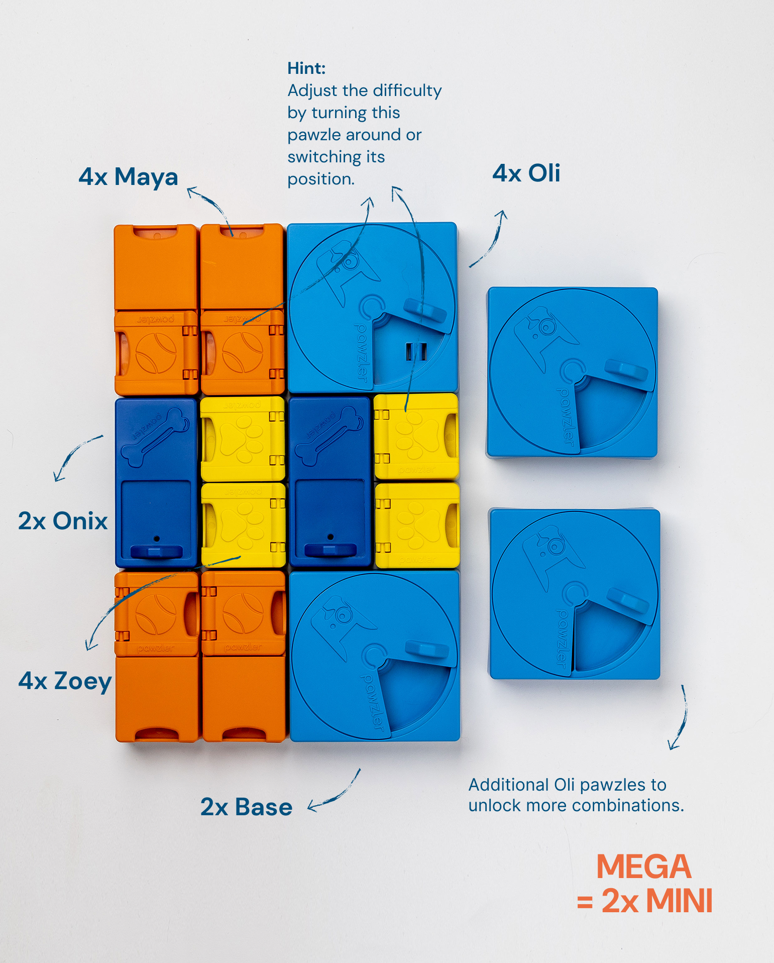 - Tipy na predĺženie životnosti Pawzlera: Hrajte sa so svojím psom a dohliadajte naňho, aby ste ho naučili hrať sa s Pawzlerom. Ak váš pes začne hračku hrýzť alebo prejavuje iné známky nespokojnosti, odmeňte ho a presmerujte jeho pozornosť na hľadanie maškŕt. Prípadne si dajte od hry pauzu, kým sa pes neupokojí.
