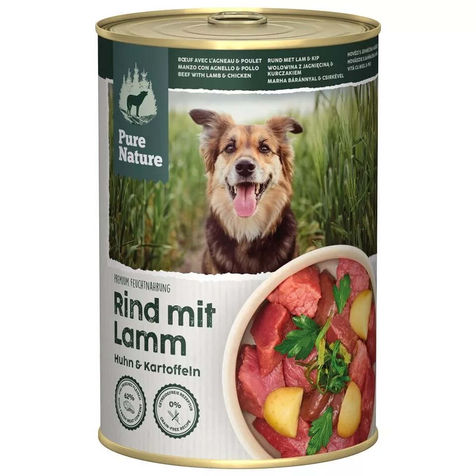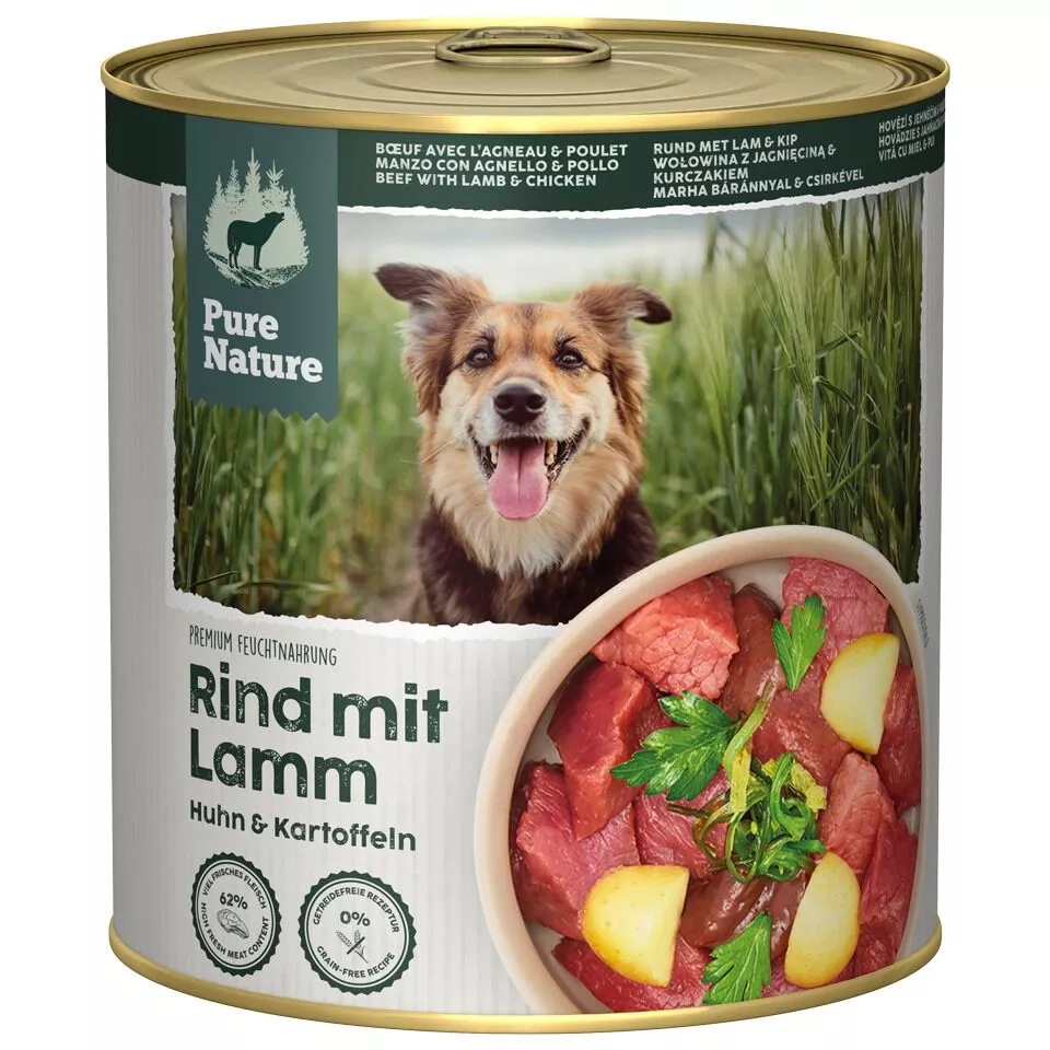 PURE NATURE Konzervy pre dospeláka hovädzie s jahňacím a kuracím mäsom
