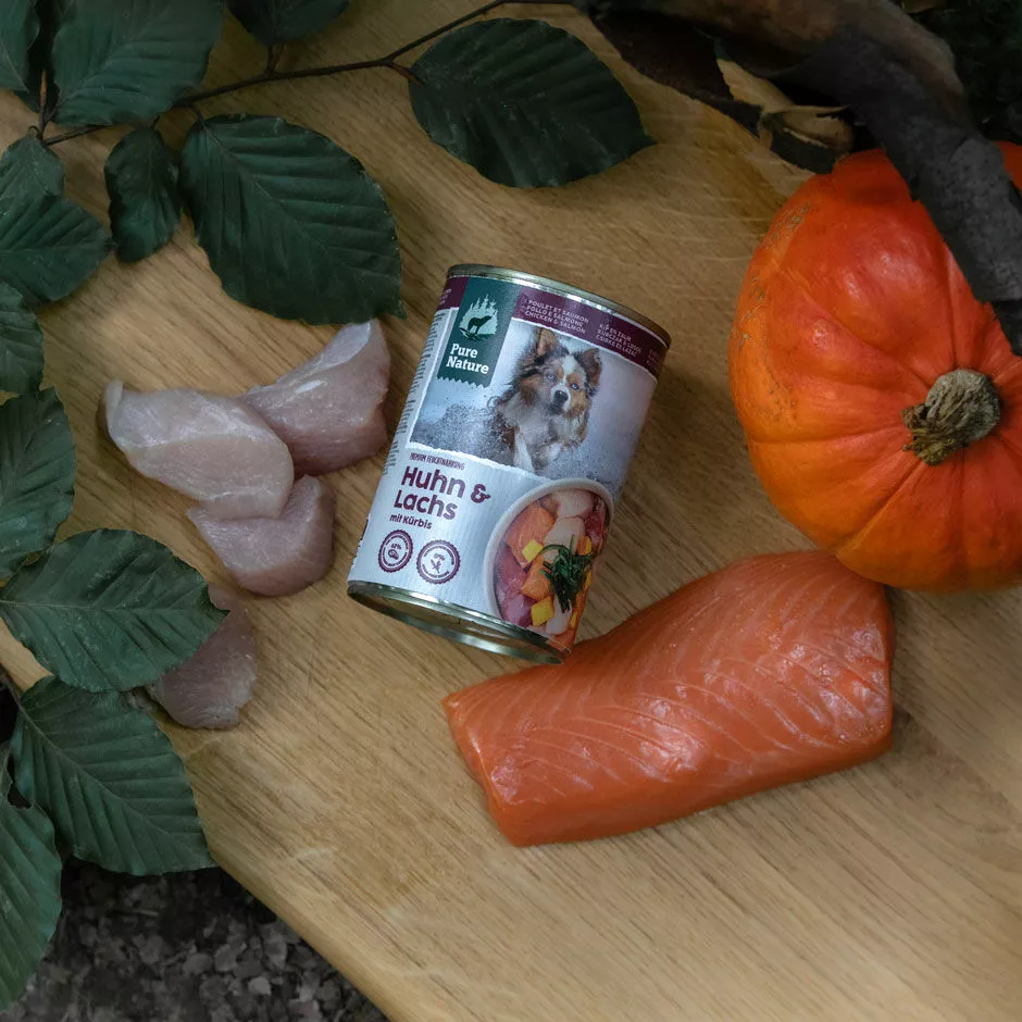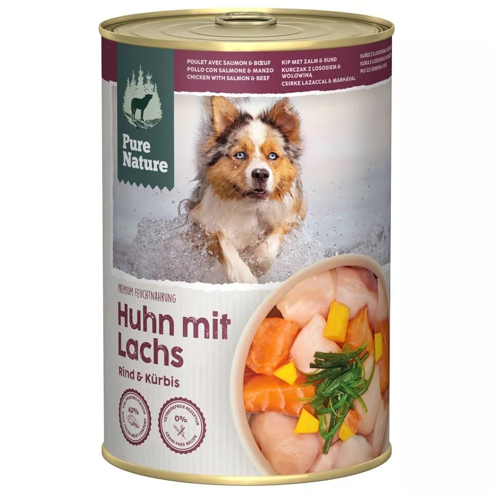 PURE NATURE Konzervy pre dospeláka kuracie mäso s lososom a hovädzím mäsom