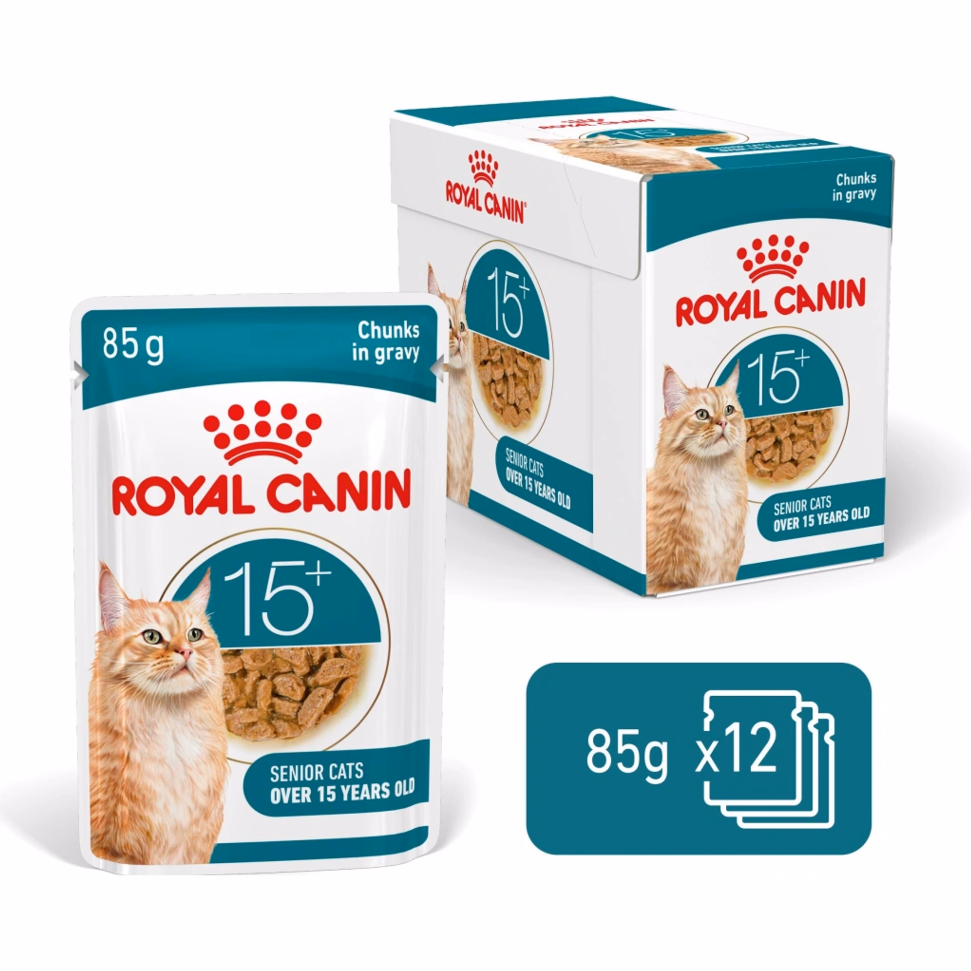 Royal Canin Ageing 15+ in Gravy je kompletné vlhké krmivo určené pre mačky vo veku 15 rokov a viac. Receptúra je špeciálne prispôsobená potrebám mačiek v pokročilom veku, keď sa ich metabolizmus, trávenie aj celková vitalita prirodzene menia.