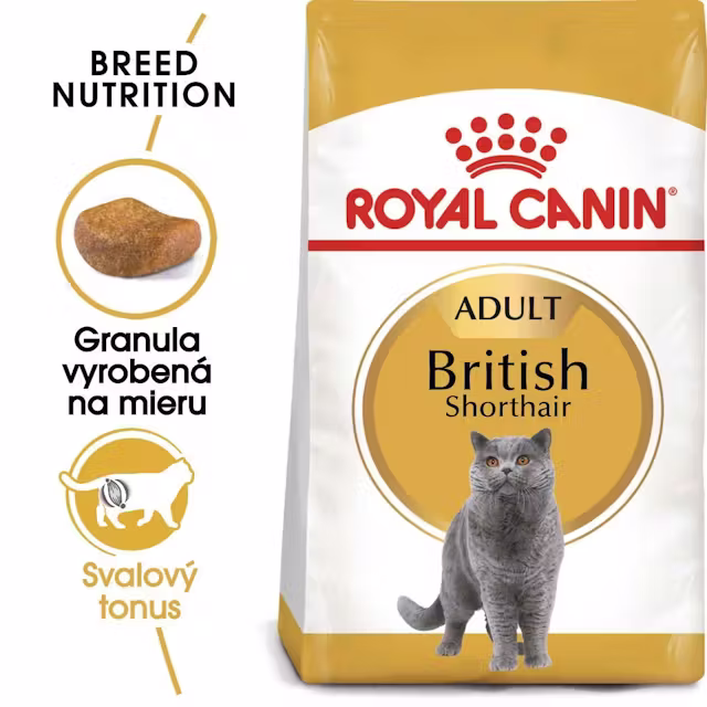 Royal Canin FBN Cat British Shorthair sú granule určené pre dospelé britské krátkosrsté mačky staršie ako 12 mesiacov. Receptúra je prispôsobená robustnej a svalnatej telesnej stavbe tohto plemena a podporuje svaly, srdce, kosti a kĺby.