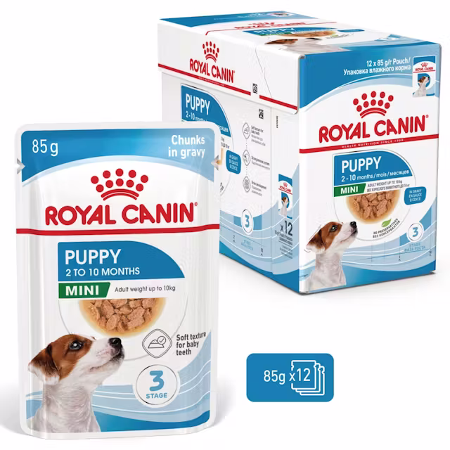 Royal canin mini puppy gravy kapsičky pre šteňatá sú kompletné krmivo určené pre šteňatá malých plemien s hmotnosťou v dospelosti do 10 kg vo veku do 10 mesiacov.