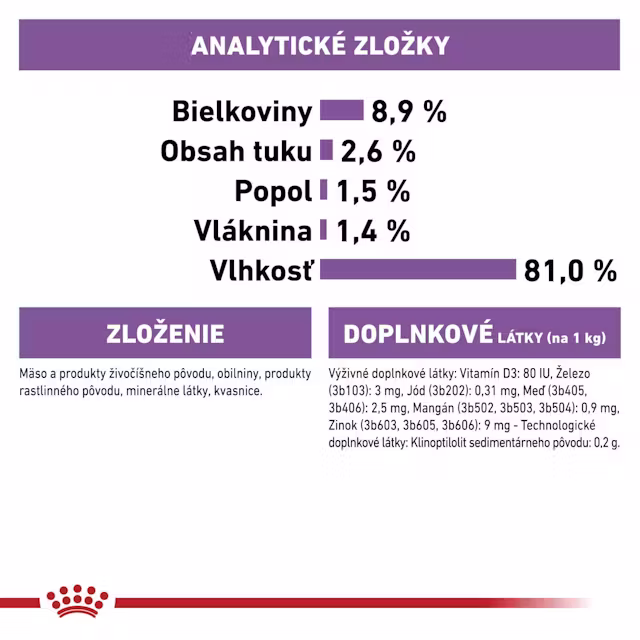 Royal Canin Sterilised in Gravy je kompletné vlhké krmivo určené pre dospelé mačky po sterilizácii od 12 mesiacov. Po sterilizácii sa energetické potreby mačky znižujú a často dochádza k poklesu aktivity, preto je dôležité prispôsobiť jej výživu.