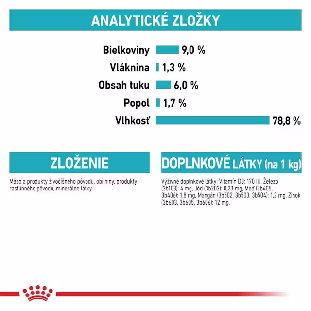 Krmivo obsahuje vyvážené množstvo minerálov a vysoký obsah vlhkosti pre podporu zdravia močových ciest.