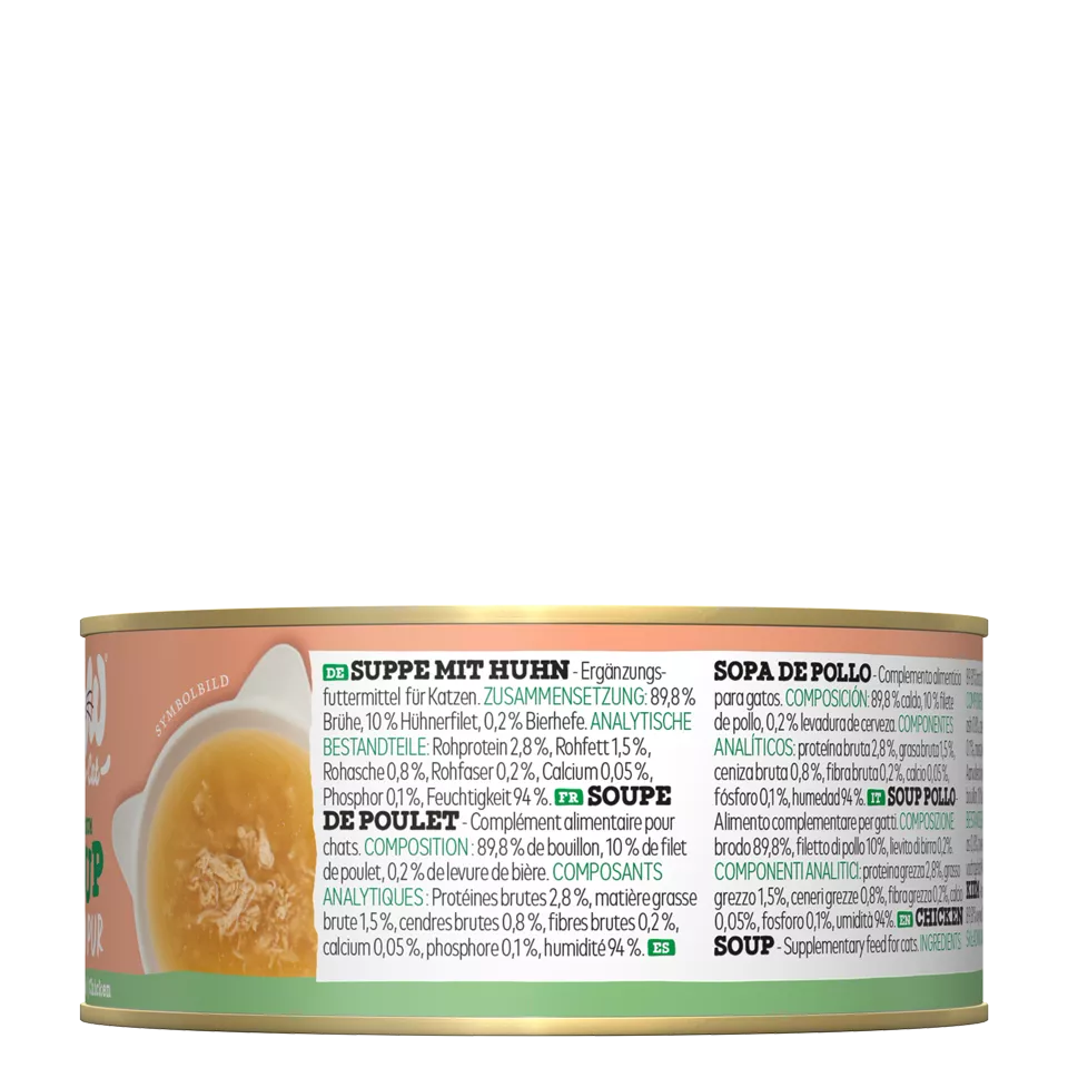 Okrem toho má polievka jemnú konzistenciu, ktorá sa ľahko prijíma. Príjemná chuť kuracieho mäsa zároveň podporuje chuť do jedla. Toto doplnkové krmivo pre mačky tak môže pomôcť aj v prípade vyberavých mačiek.