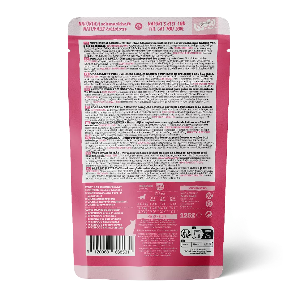 WOW CAT kapsičky pre mačiatka sú vhodné pre mladé mačky počas rastu. Najviac ich ocenia mačiatka, ktoré preferujú jemnú textúru paštéty.