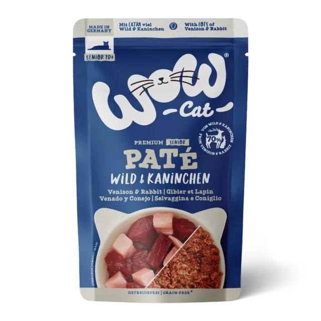 WOW CAT kapsičky pre senior mačky so zverinou a králikom predstavujú kompletné mokré krmivo pre staršie mačky. Jemná paštéta má hladkú textúru, ktorá sa ľahko konzumuje. Práve preto tieto kapsičky pre senior mačky dobre prijímajú aj mačky vo vyššom veku.