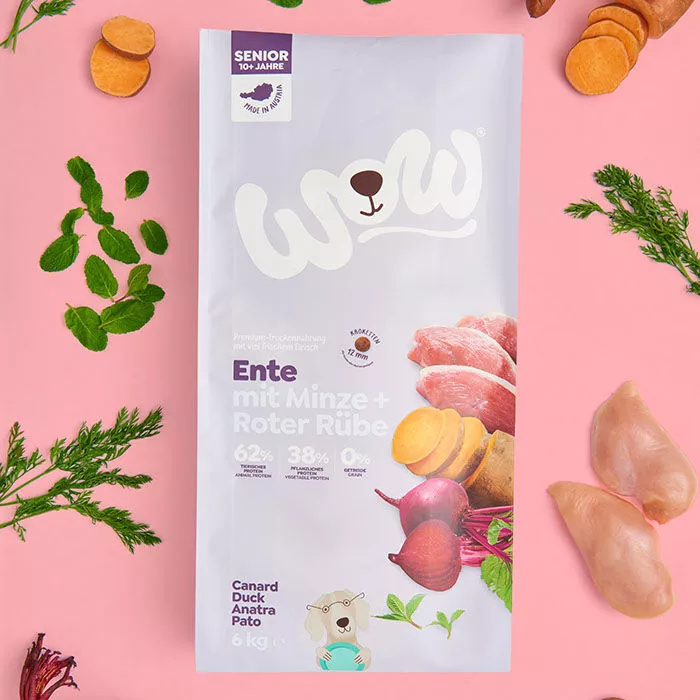 • WOW tip na chuť: V zlatom veku sa potreby našich štvornohých priateľov menia – WOW Senior poskytuje vášmu staršiemu psovi všetky dôležité živiny, ktoré vtedy potrebuje.
