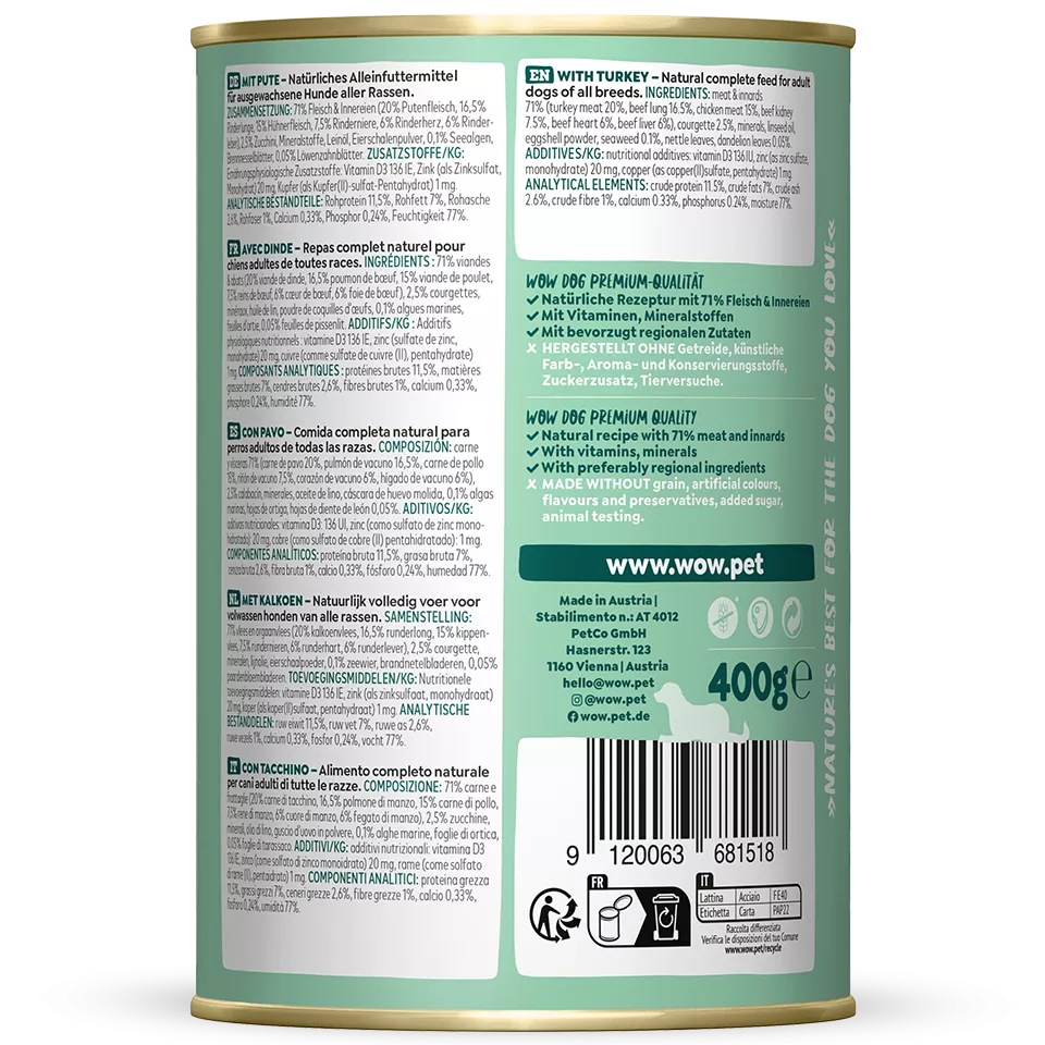 WOW DOG Konzervy pre dospeláka s morčacim mäsom