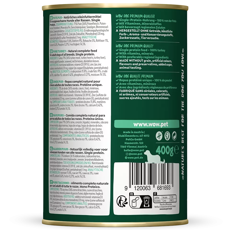 WOW DOG Konzervy pre psy čisté morčacie mäso