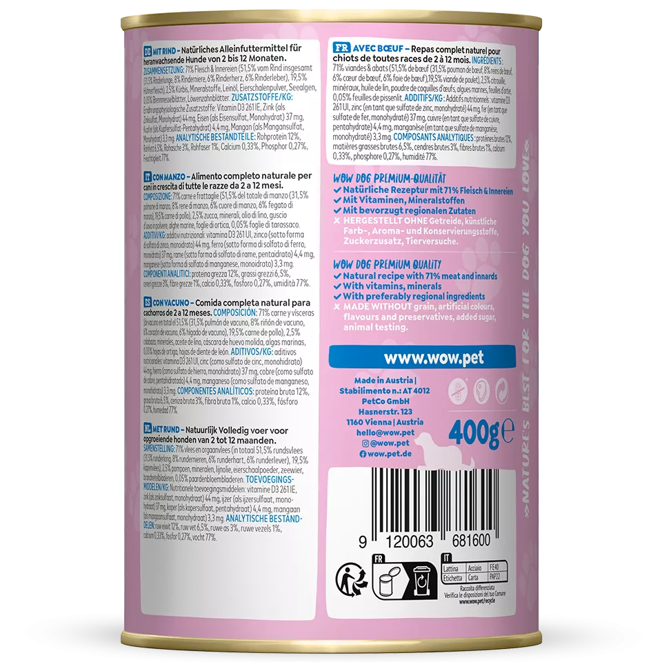 WOW DOG Konzervy pre šteniatka s hovädziem mäsom