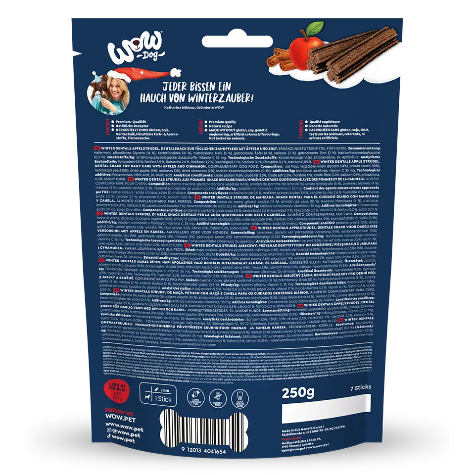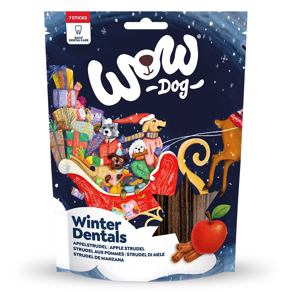 S Winter Dentals sa každý hryz stane zimnou rozprávkou pre tvojho psa! Spájajú sviatočnú príchuť jablkovej štrúdle s prirodzenou dentálnou starostlivosťou – ideálne na vychutnávanie aj rozmaznávanie.